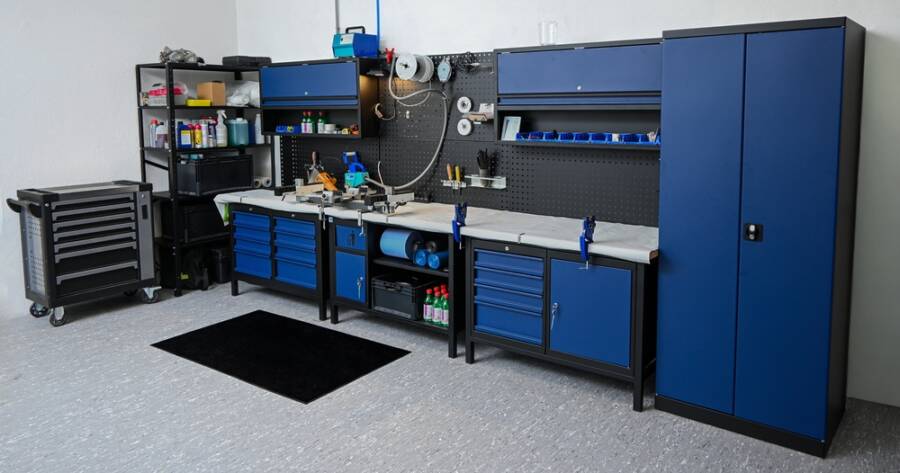 Workbenches with built-in cabinets or pegboards also improve organization. Pegboards allow homeowners to hang frequently used tools in clear view. This keeps tools easy to access while preventing clutter from building on the work surface.